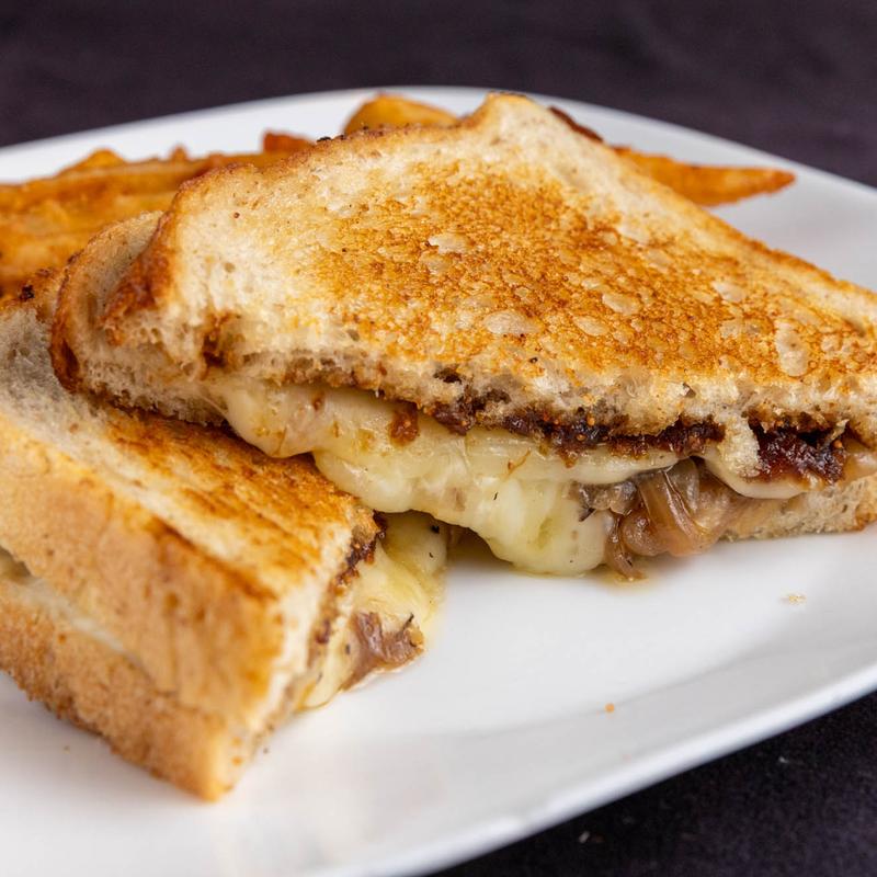 Toasted sourdough with melty brie, fresh mozzarella, cheddar, Swiss, caramelized onions and fig jam.