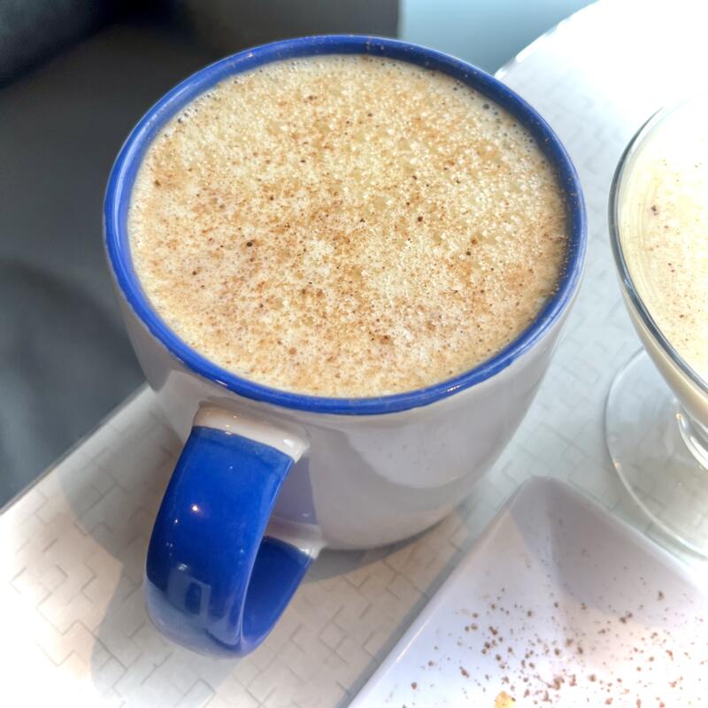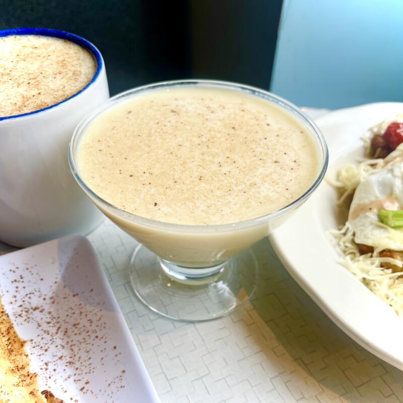 Eggnog steamed with cinnamon brown sugar and topped with cinnamon & nutmeg