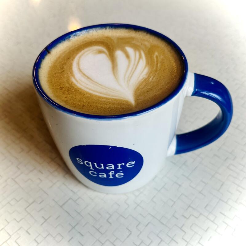 Square Cafe Logo Pint Glasses. Available in lime green and blue