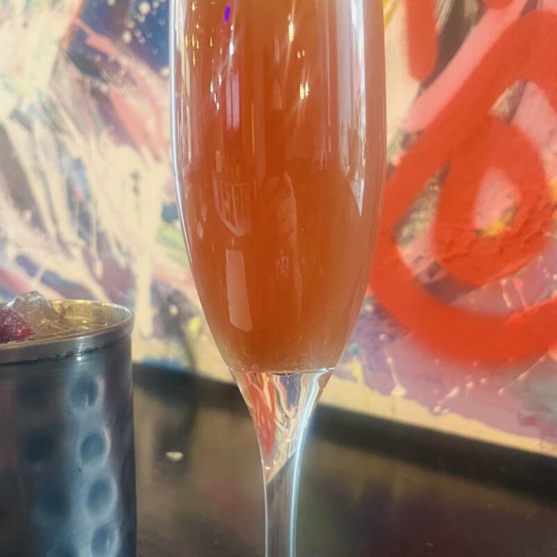 Sparkling wine w/ orange liqueur, fresh squeezed orange & cranberry-pomegranate juice