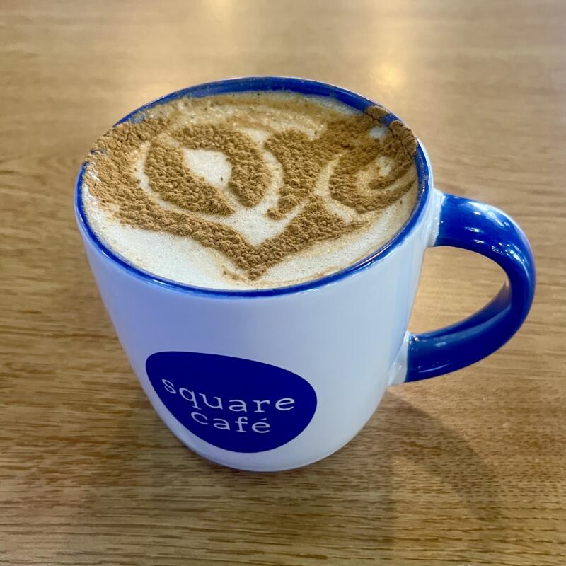 Square Cafe Logo Pint Glasses. Available in lime green and blue
